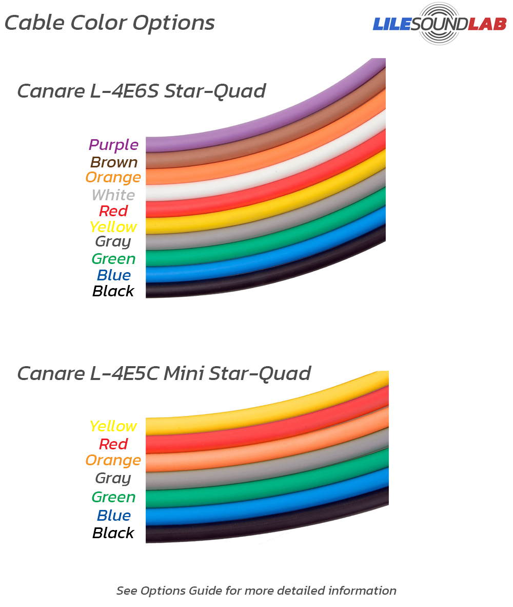 Made with Canare L-4E6S or L-4E5C Star-Quad cable but wired like a traditional balanced microphone cable.